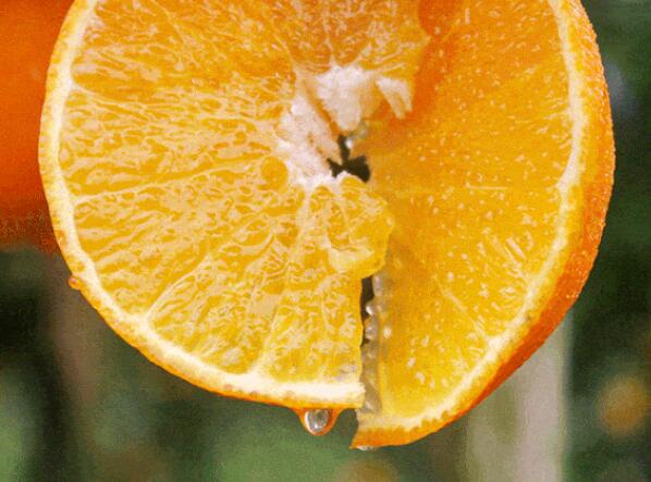 紅江橙的果肉呈橘黃色,一刀切開后,濃郁誘人的橙香撲面而來,滲著汁水的果肉晶瑩剔透,飽滿多汁,看著就忍不住想咬上一口。